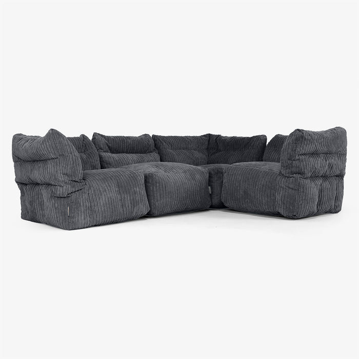 Canapé d’Angle Modulable 4 Places Côtelé Noir– Big Bertha Original FR