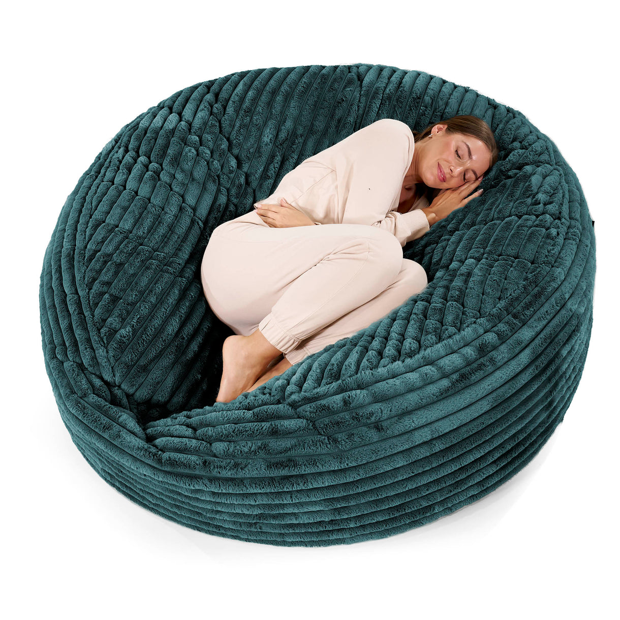 Canapé Pouf Géant Grande Mammouth Velours Côtelé Ultra Pelucheux Bleu Canard