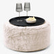 Pouf Ottoman avec Plateau - Fausse Fourrure Lapin Brun Doré 01